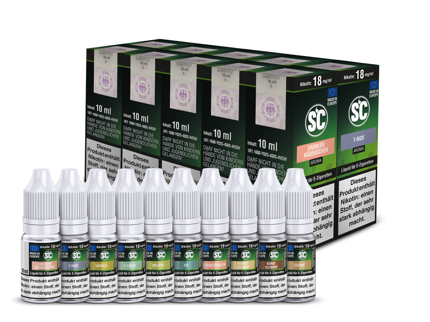 Die Liquid von SC überzeugen durch Qualität und Geschmack. SC E-Liquidskönnen mit allen E-Zigaretten bzw. Verdampfern genutzt werden, diese gilt für das moderate Dampfen sowie auch für den Sub-Ohm-Bereich.